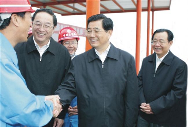 昨日国家领导人胡锦涛莅临大桥局钢筋场检查工作,领导人夸赞我们施工严谨、质量优质。